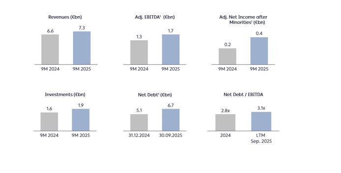 Силни резултати за деветте месеци од 2025 година со прилагодена EBITDA од 1,7 милијарди евра и нето добивка од 0,4 милијарди евра