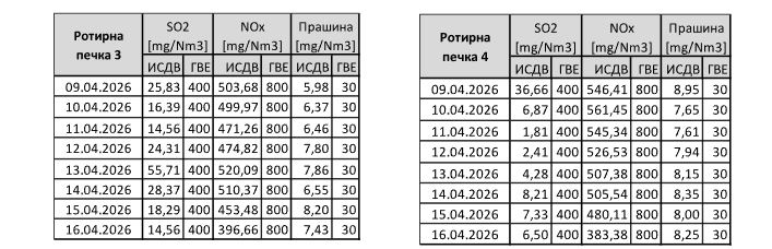 Неделен извештај за измерени средно-дневни вредности на емисии од главните емисиони точки во ТИТАН УСЈЕ