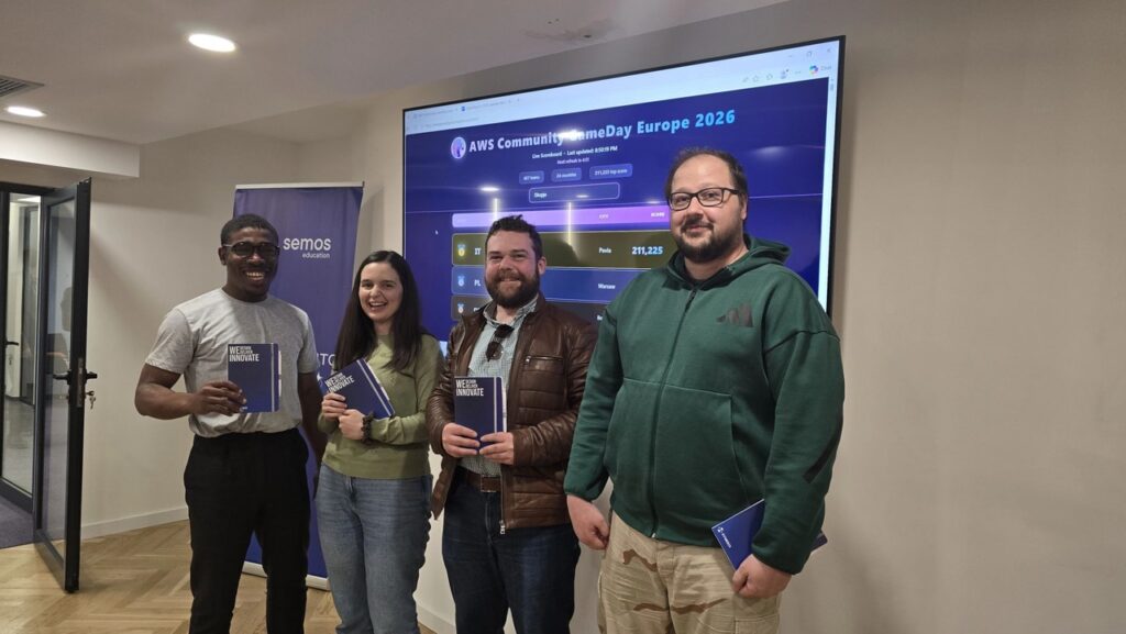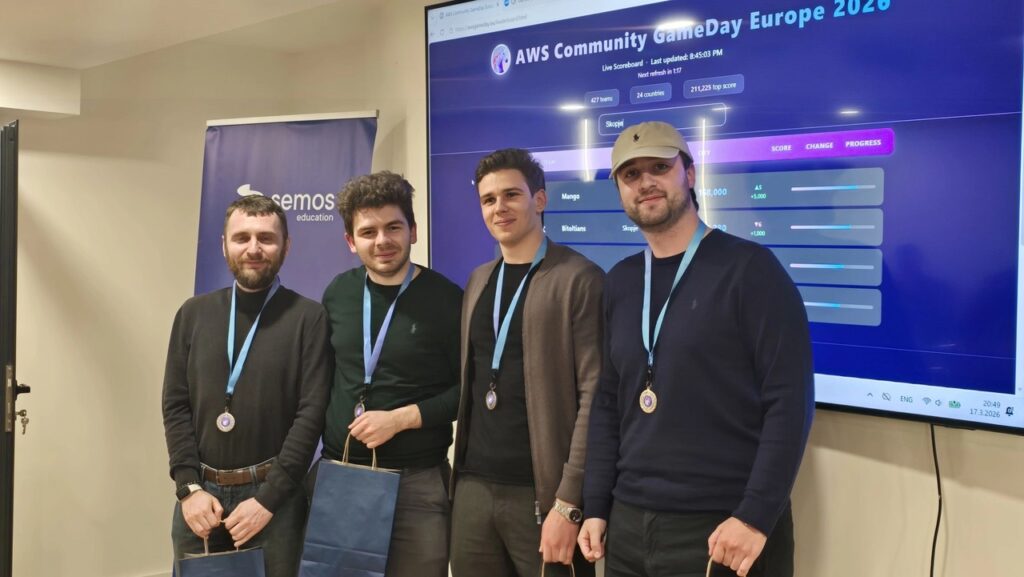 Семос Едукација беше домаќин на AWS Community GameDay Europe во Скопје, интернационален практичен настан кој ги обединува AWS ентузијастите, ИТ професионалците и технолошките тимови од цела Европа. GameDay овозможува учесниците да ги тестираат своите cloud вештини во реални, симулирани сценарија базирани на Amazon Web Services – водечката светска cloud платформа.