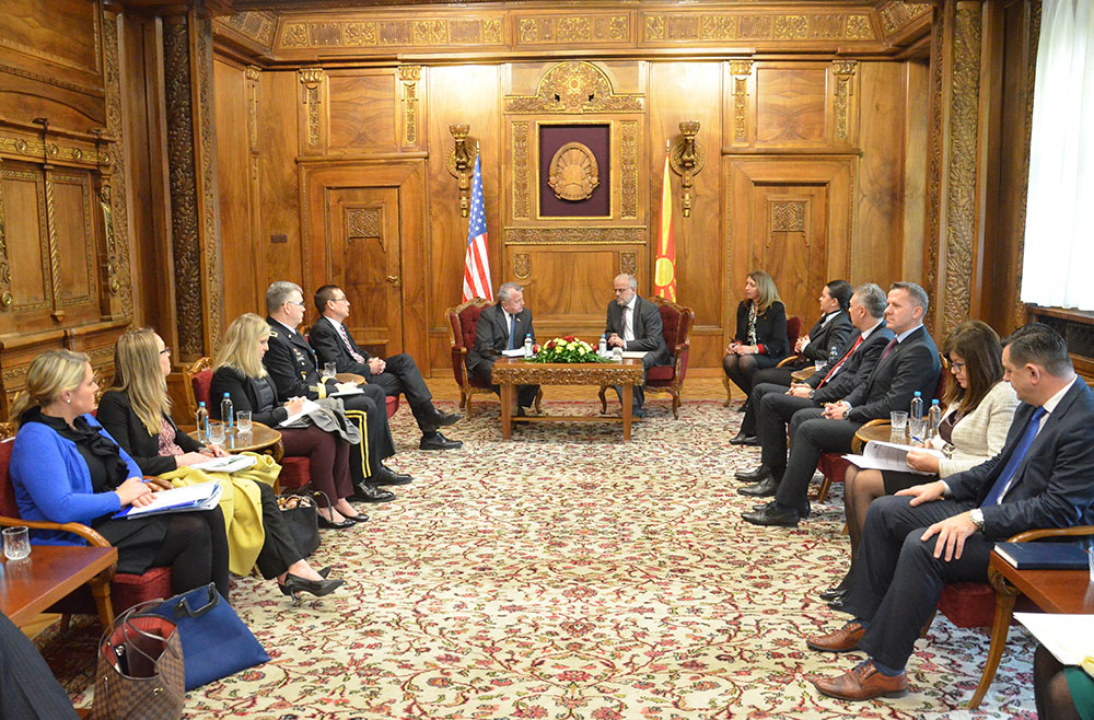 На средбата претседателот Џафери изрази благодарност до САД како стратешки партнер на нашата земја, за континуираната поддршка што ја дава не само на Република Македонија туку и на целиот регион. Тој го запозна високиот гостин со тековните активности во законодавниот дом во однос на усвојувањето на уставните предлог-амандмани, како фаза од имплементирањето на преспанскиот договор, со очекување дека процесот ќе се заокружи до крајот на првата половина на месец јануари 2019 година. Понатаму, Џафери зборуваше за чекорите што ги презеде Владата на Република Македонија за подобрување на добрососедските односи, потврдувајќи дека Договорот за пријателство, соработка и добрососедство со Република Бугарија веќе дава позитивни резултати.