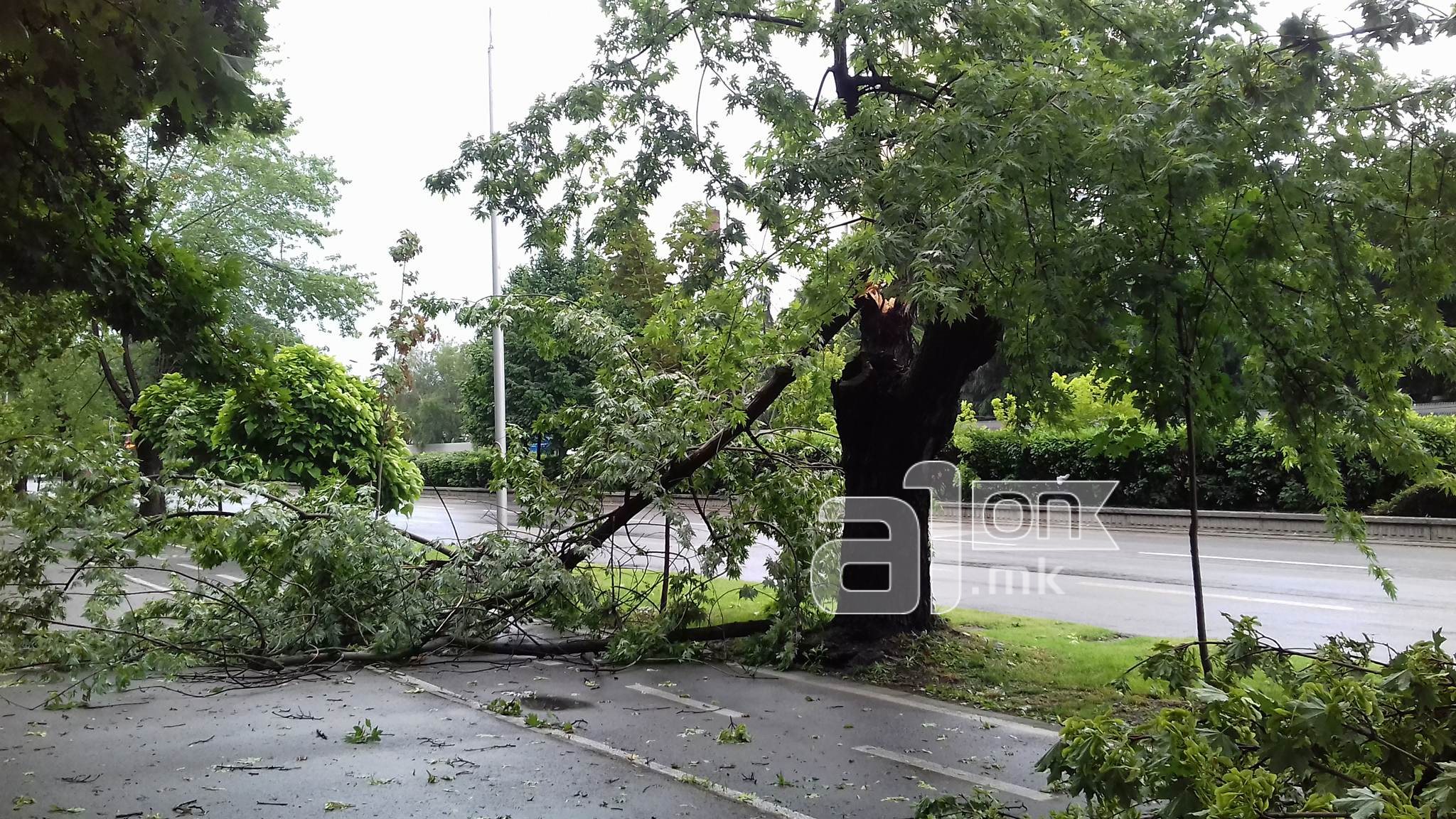 Невремето што го зафати скопското подрачје, со дожд, град и силен ветер го отежна движењето на сообраќајот. Од силниот ветер искршени се и откорнати повеќе дрвја.