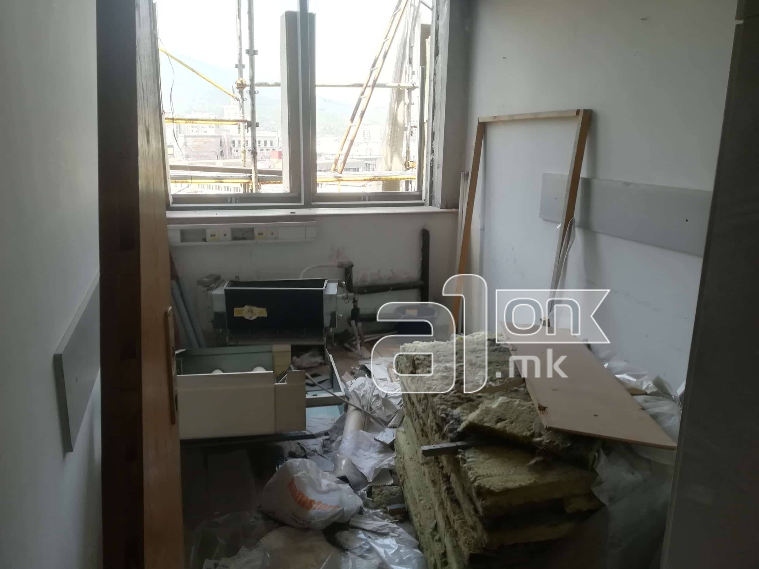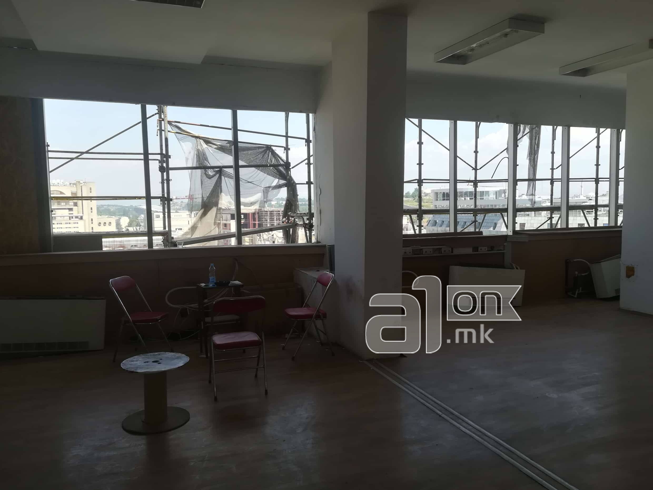 Вработените на овој кат наместо прозорци, имаат најлони на ѕидовите на кои во летниот период мора да направат дупки како би влегол свеж воздух во канцелариите. И покрај тоа што овој кат не бил предвиден да функционира поради градежните работи кои се одвиваат, сепак, директорот Миновски, одлучил вработените да ги префрли токму во овој дел од зградата каде покрај другото, нема ниту уреди за ладење и греење на просториите.