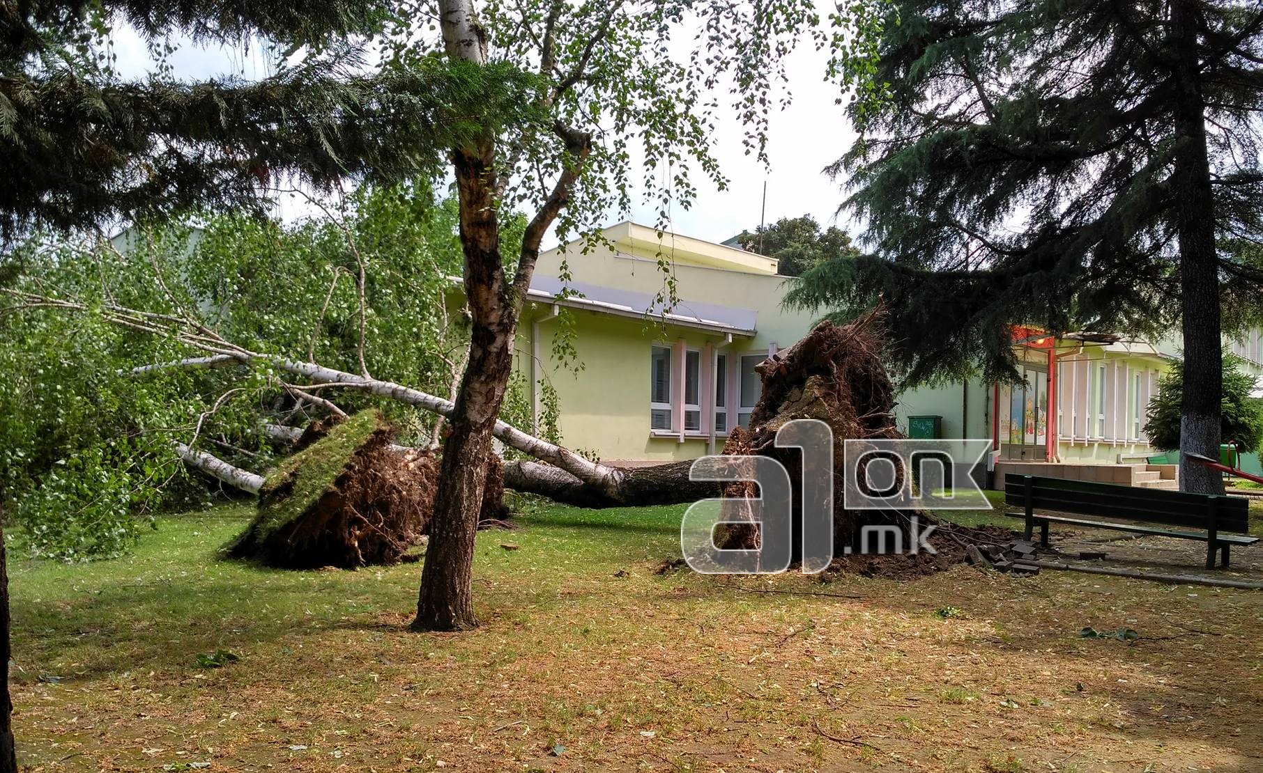 Неколку дрвја беа од корен откорнати во градинка во скопската општина Аеродром.