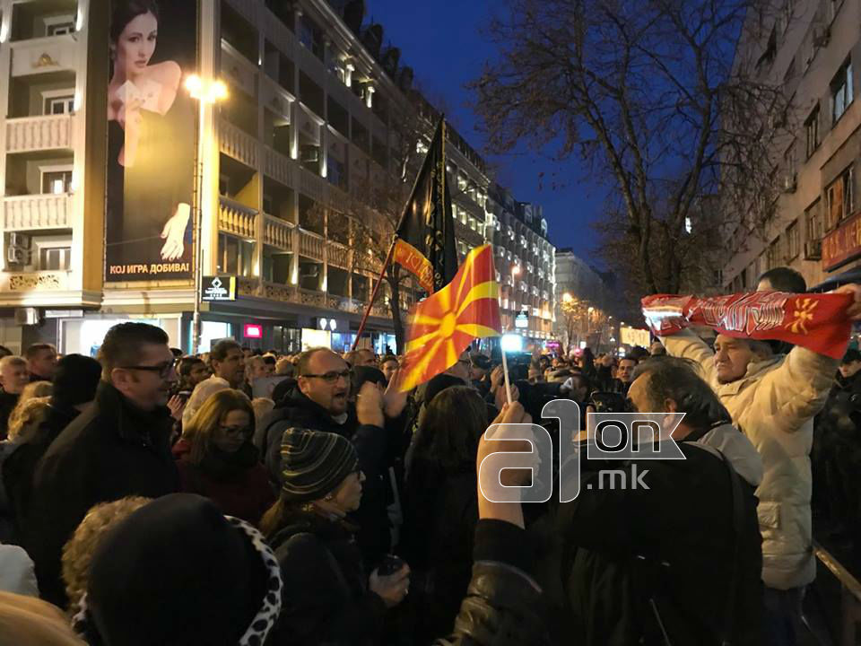Насобраните граѓани извикуваат „слобода, слобода“ и „Никола, Никола“.