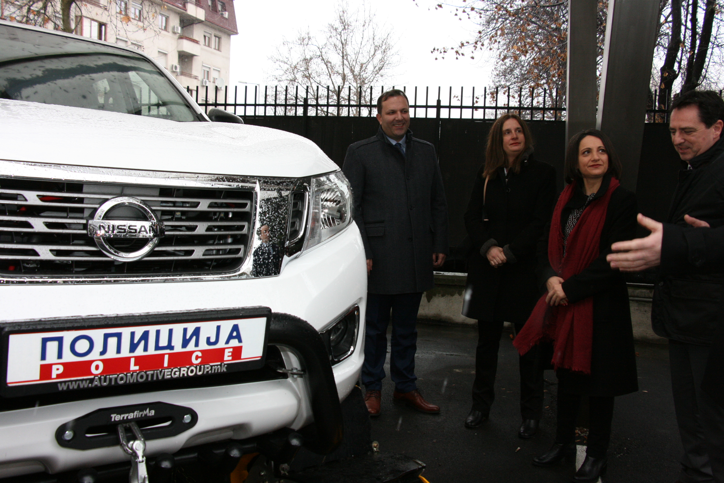 Возилата се опремени со специјална опрема која се користи за тешко пристапни локации и во лоши временски услови. Министерот Оливер Спасовски во име на Министерството за внатрешни работи се заблагодари на донацијата, потенцирајќи ја одличната соработка со Делегацијата на ЕУ и ИОМ.