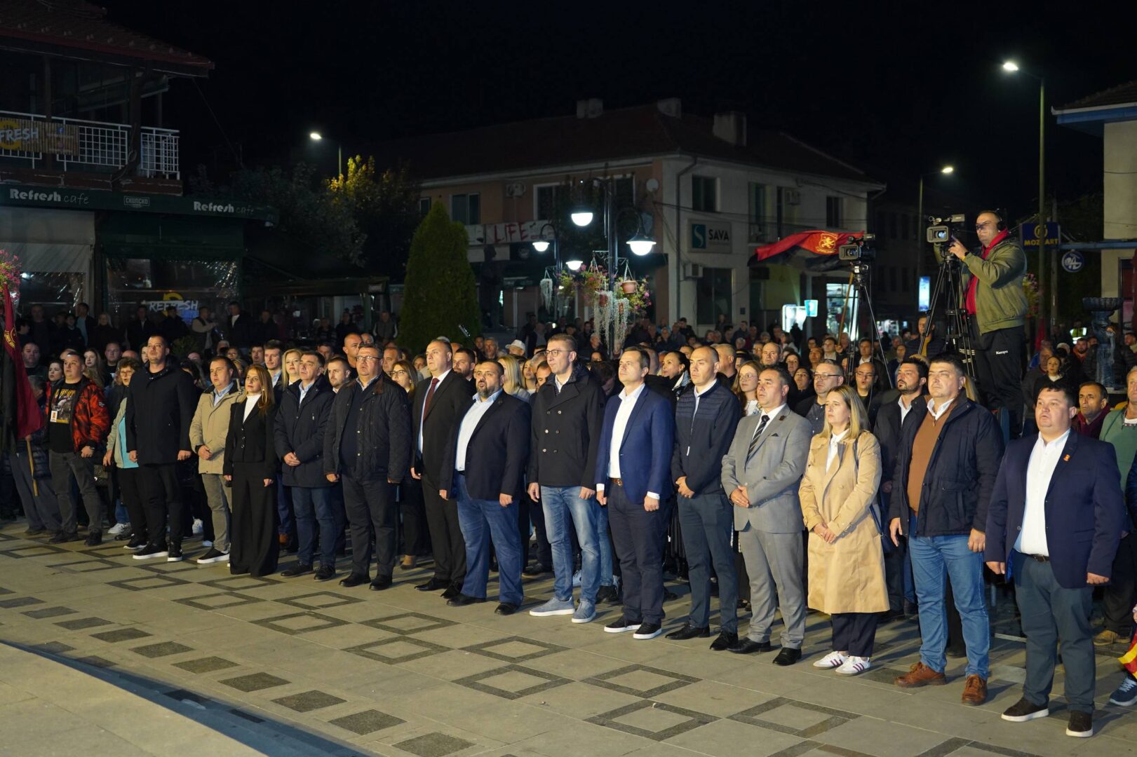 „Нивниот дом за кој се борат се бизнисите, тендерите, зделките во четири очи, фабриките за марихуана, желбата да се профитира на нечесен и криминален начин. И знаат дека со секој глас повеќе, со секоја поддршка повеќе за нас, тие се готови, а така го гледаат во очи нивниот политички крај. А политичкиот крај значи и соочување со она од што најмногу се плашат, а тоа е правдата. Сето ова за што ви зборувам, драги мои, можевте да го видите на филмска лента во изминативе две и пол недели од оваа кампања за првиот круг на овие локални избори. Сосема извесно е дека со еден избор одите напред, а со друг се враќаме назад. Сетете се само на оние 7 години кога влада беа СДСМ и ДУИ. Со еден избор се борите за твоето маало, за твојата општина и заедничката иднина, а со другиот се борите за нивните лични интереси. Затоа на овие избори е пресудно и клучно најпрвин да излезете да гласате“, рече Мицкоски.