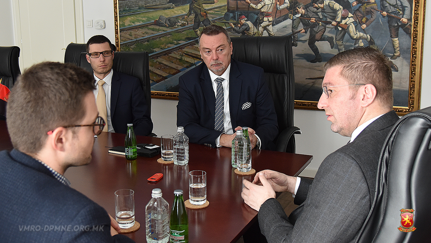 Претседателот на ВМРО-ДПМНЕ, Христијан Мицкоски денеска, заедно со меѓународниот секретар на ВМРО-ДПМНЕ, Тимчо Муцунски остварија средба со Амбасадорот на Чешка во Република Македонија, Мирослав Томан.