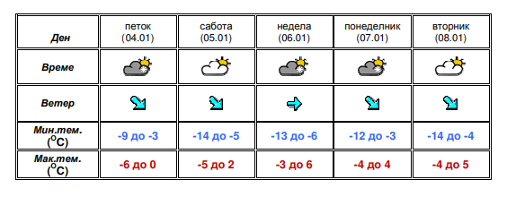 Помалку снег се очекува во североисточните делови. Поради засилениот северен ветер утре можна е појава на снежни навеви, велат синоптичарите. Во наредните неколку денови времето ќе биде променливо облачно и студено со многу ниски утрински температури и со слаби повремени врнежи од снег, велат од УХМР. А ќе има услови и за појава на голомразица.