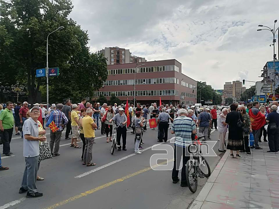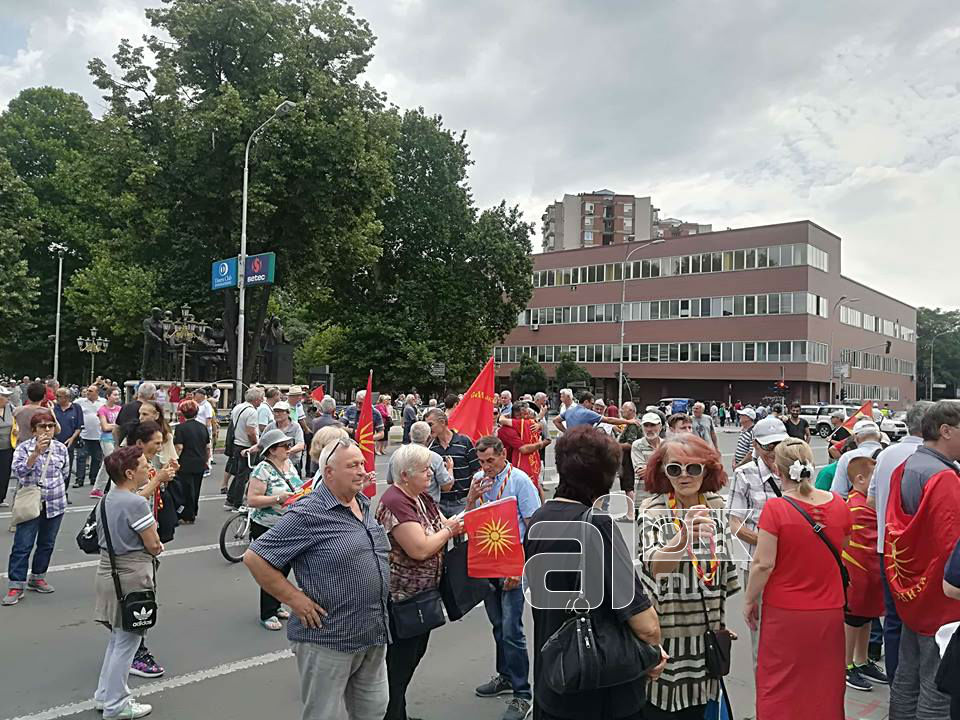 Помала група граѓани денеска повторно излегоа на протест пред Собранието на Република Македонија поради закажаната седница на чиј дневен ред е Предлог-законот за ратификација на договорот за решавање на спорот за името.