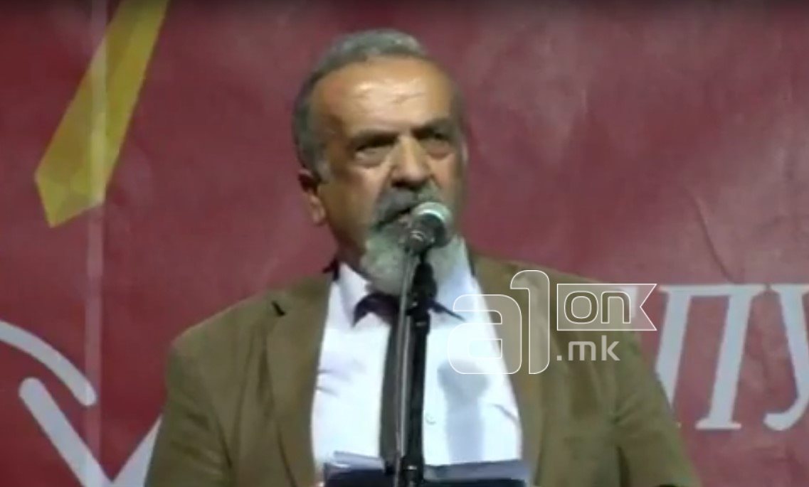 „Дојдов овде повикан од гневот одвнатре од се она што денес го прават неколкуина поданици, безрбетници, неколкумина платеници среброљубци и еврољупци, предавници на родот, на јазикот и на крстеното име – библиска Македонија. Дојдов заедно да го кренеме нашиот глас за да чујат и да видат сите, сите да знаат дека оваа земја не е само оваа земја – туку дрѓава со сите нишани, дрѓава на едне исконски народ, суверена Република Македонија“, рече Димче Донески.