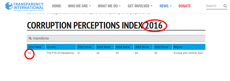 ВМРО-ДПМНЕ ги помеша годините и фактите за корупцијата па објави информации за пад на индексот на корупција коишто се однесуваат на 2016 и 2015 година, кога во Македонија владееше корумпираната власт на Никола Груевски и ВМРО-ДПМНЕ.