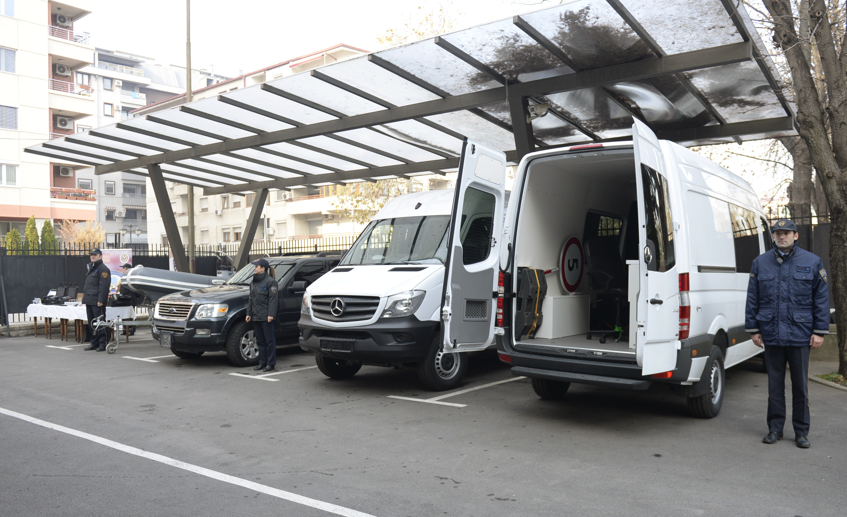 Македонската полиција доби две комби возила со мобилни единици за детекција на радијација, патролен чамец, теренско возило за полициската единица за службени кучиња и еден уред за обработка податоци.