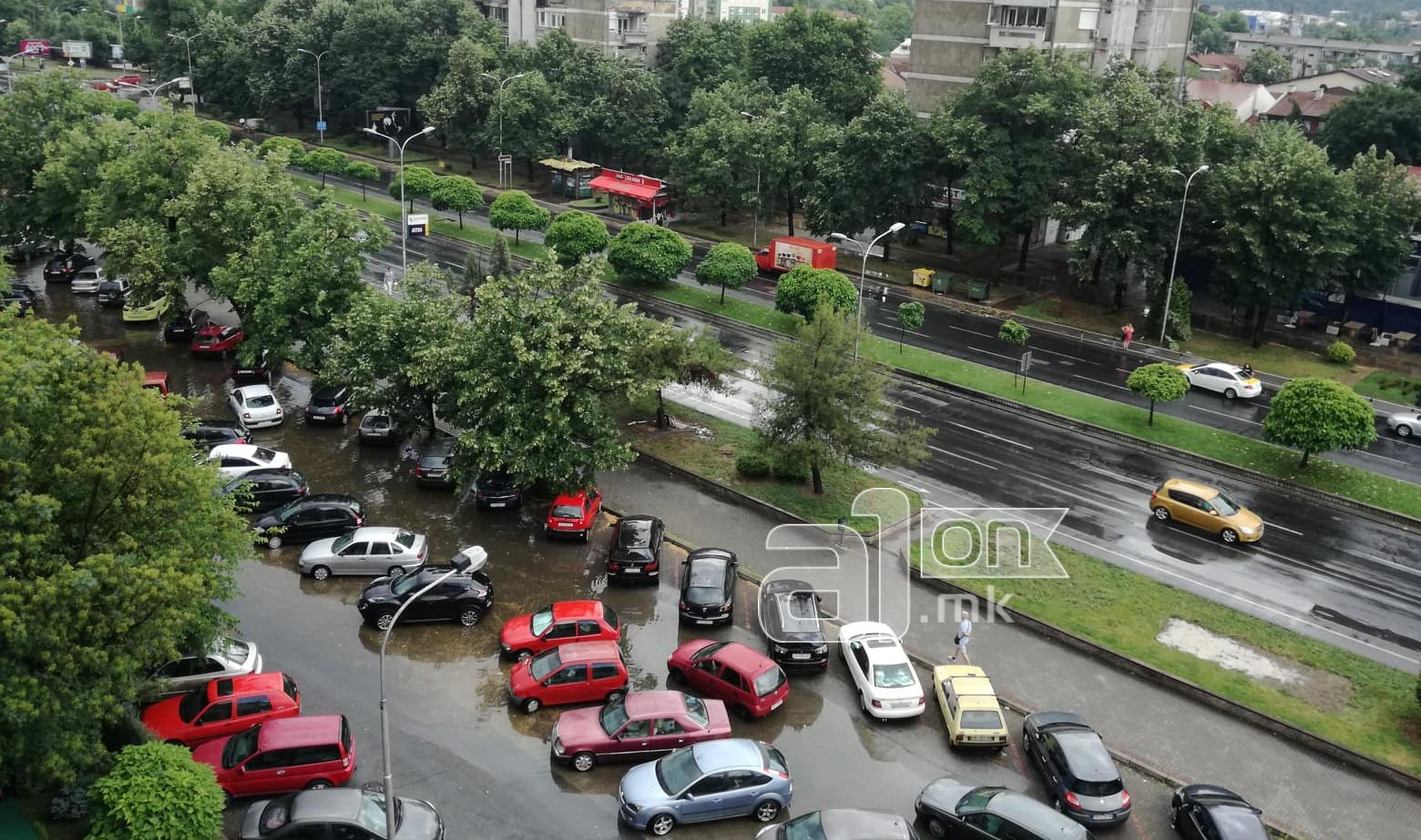 По силното невреме кое што го зафати главниот град претпладнево, сообраќајниците и паркинзите низ градот се под вода.