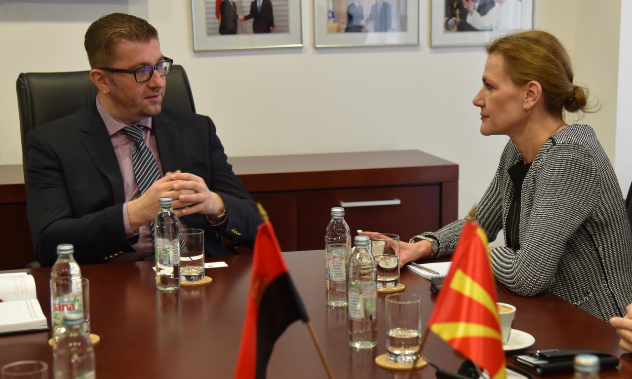 Претседателот на ВМРО-ДПМНЕ, Мицкоски ја запозна својата соговорничка со актуелната политичка состојба во државата, при што беше нагласено дека во државата е загрозена демократијата преку политичкиот терор кој го спроведува власта, немањето дебата за клучните прашања и катастрофалните економски политики кои се повеќе ги осиромашуваат граѓаните.