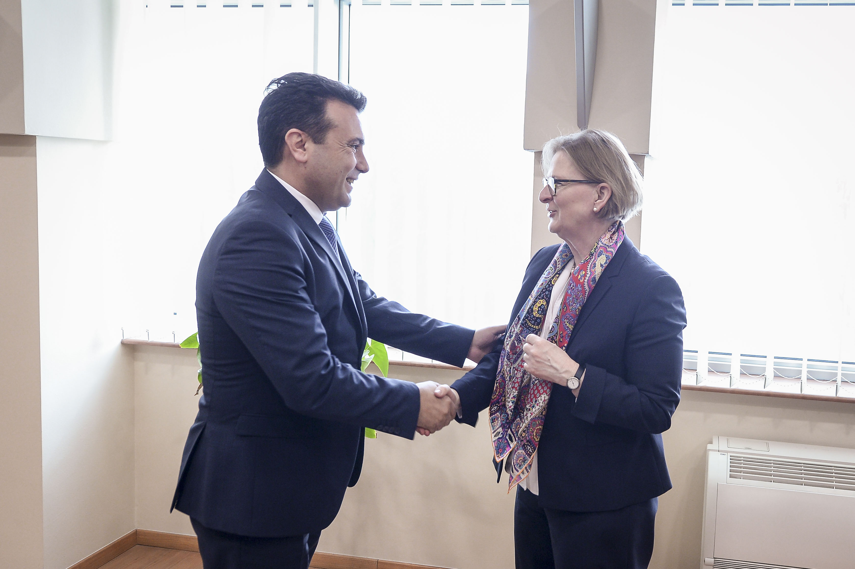 Претседателот на СДСМ, Зоран Заев, денеска во Скопје оствари средба со Сузана Шутц, одговорна во федералната канцеларија на министерството за надворешни работи на Германија, за Југоисточна Европа, Турција и земјите од ЕФТА.