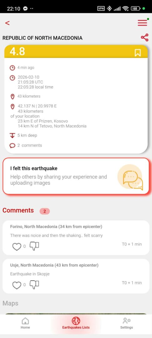 Земјотрес во Скопје, 4.8 степени по Рихтер