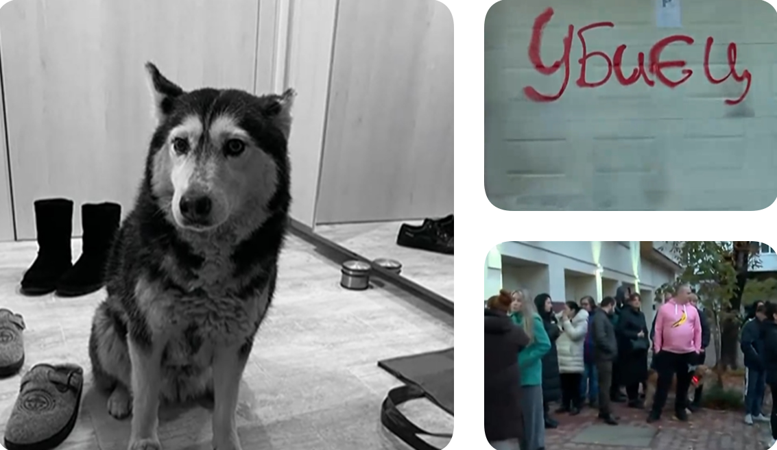 Гаражата на човекот што го прегази кучето била обоена со натпис „Убиец“.