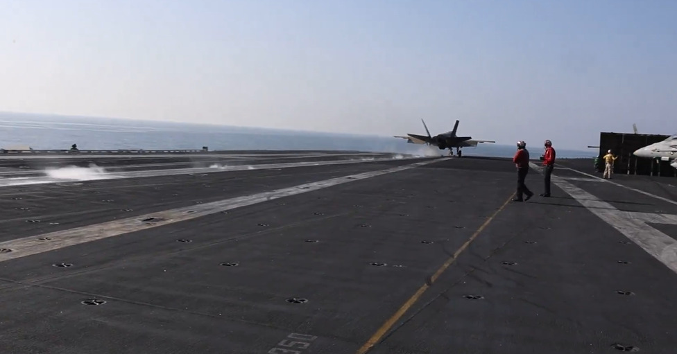 Снимките прикажуваат лансирање ракети од воен брод, полетување на борбени авиони од носач на авиони, како и напади врз ирански објекти, вклучително и дрон на земја.